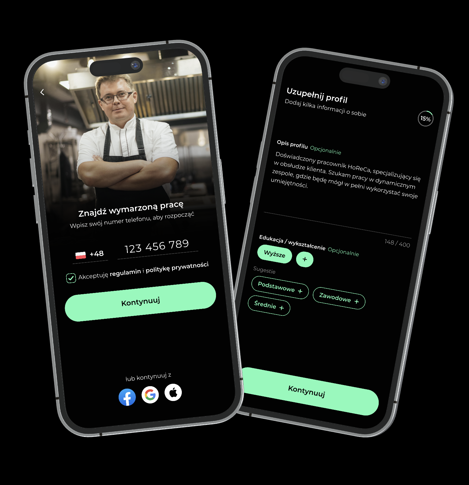 Horeca Connect to nowoczesna aplikacja mobilna, która łączy pracowników i pracodawców z branży HoReCa. Usprawniamy komunikację i przyśpieszamy nawiązywanie współprac pomiędzy stronami. Zobacz poniżej jak działamy.